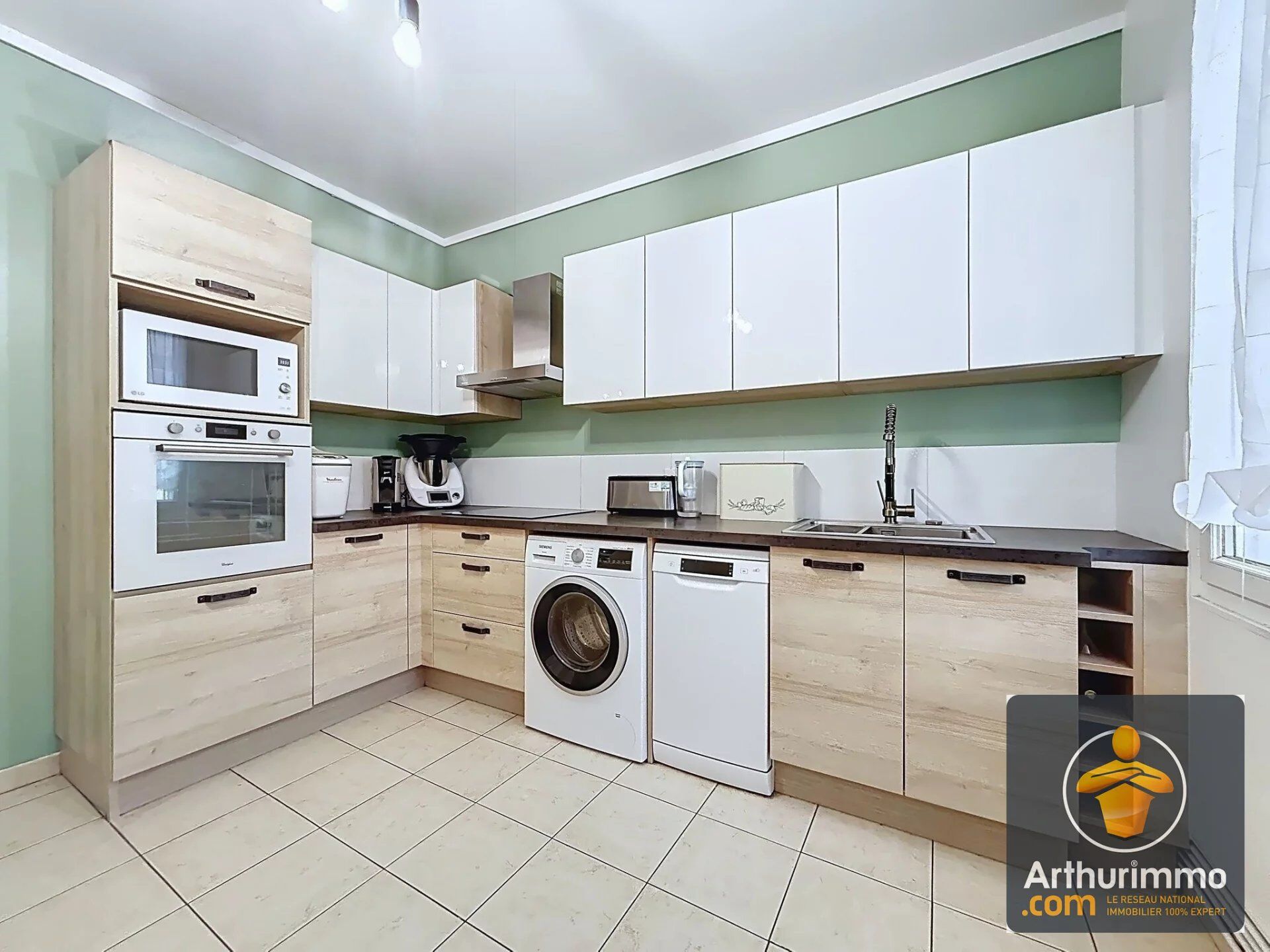 Au dernier étage d’un immeuble de quatre niveaux, l’appartement bénéficie d’une entrée indépendante menant à une cuisine séparée, entièrement aménagée et équipée, offrant un espace confortable pour les repas du quotidien.