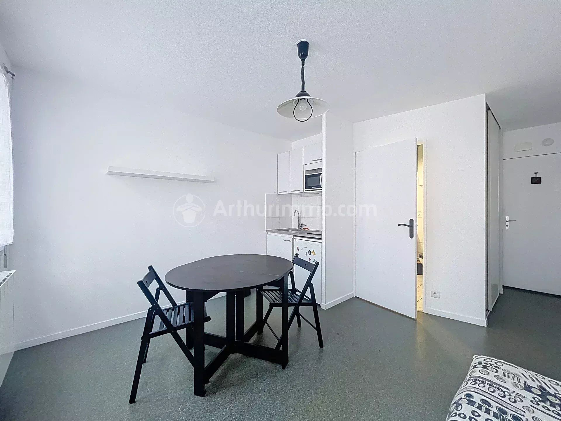 L'appartement est composé d'une entrée avec placard, une pièce de vie avec kitchenette, et une salle de bains avec WC.