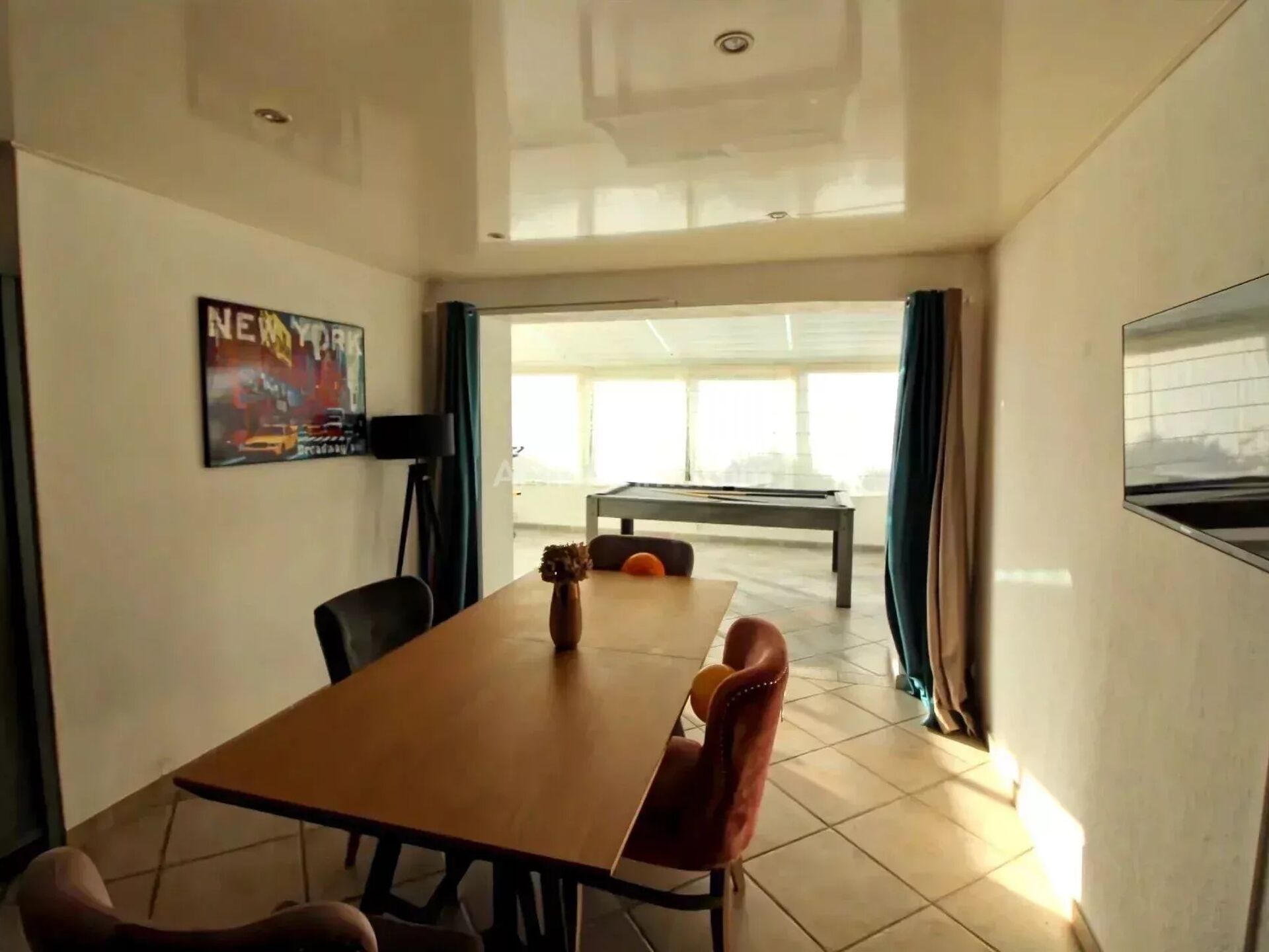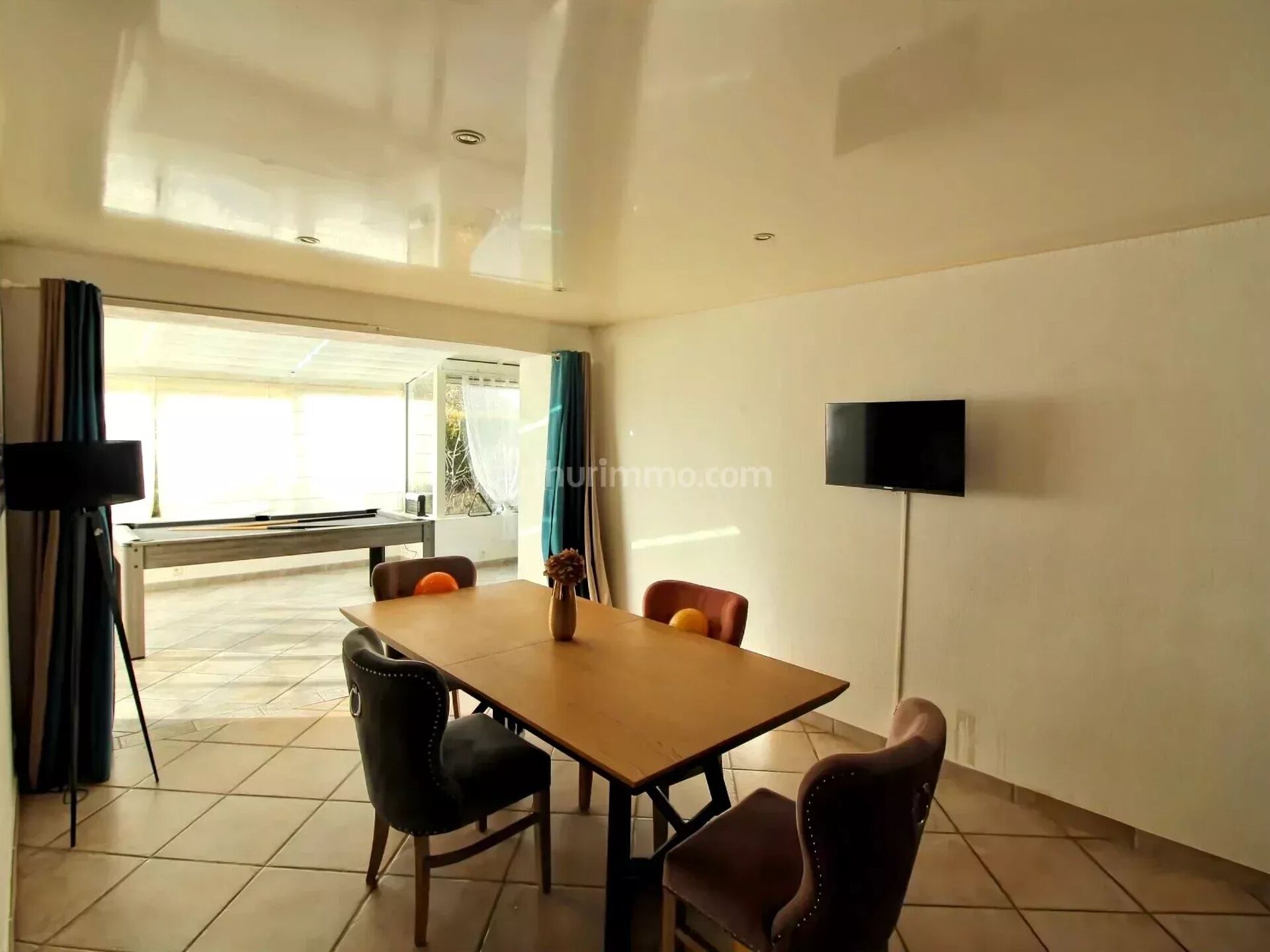 Egalement une véranda avec climatisation réversible offrant une vue sur le jardin et sa piscine.