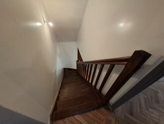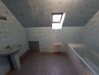 Au 1er étage : palier desservant 2 chambres, salle de bains, WC.