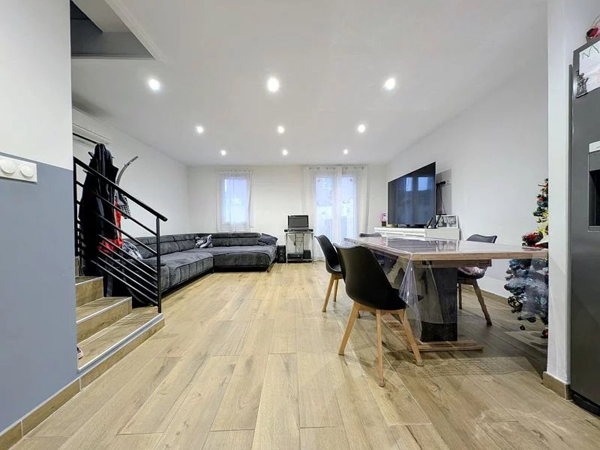 un séjour lumineux disposant d'un espace salon/salle à manger/cuisine ouverte aménagée et équipée