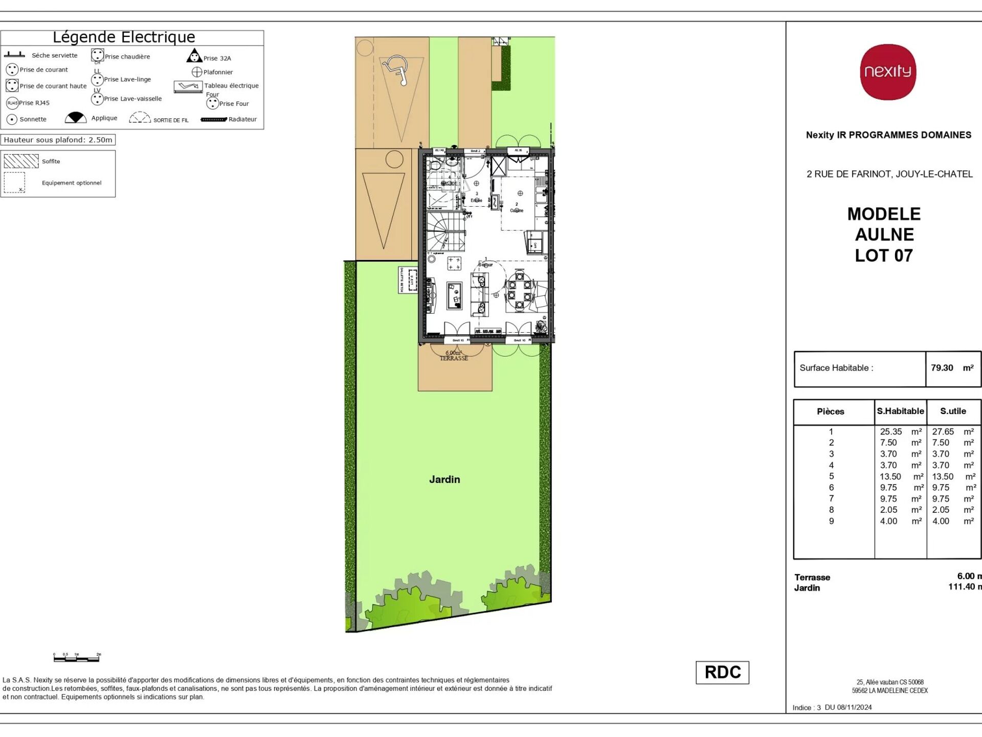 Le programme immobilier Nexity vous propose 8 maisons de type Aulne, d’une surface d’environ 79,30 m².
