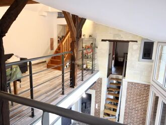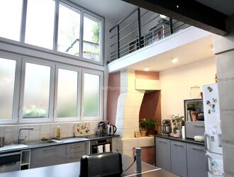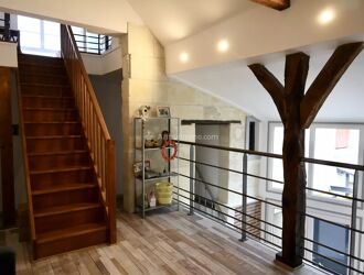 LE CABINET ARTHURIMMO COM AD FONCIER à le plaisir de vous présenter cette magnifique maison de ville située à LA CHARTRE SUR LE LOIR et proposant des volumes et agencements originaux. Cette maison de 126 m2 a été entièrement rénovée avec gout et matériaux de qualité. Entrée par salon, grande cuisine US avec salle à manger (accès direct par double portes isolantes à une cave équipée d'un four à pain), toilettes avec coin buanderie. Le premier niveau est composé d'une chambre avec dressing, une grande salle d'eau avec toilettes, ainsi qu'une large mezzanine offrant ainsi un volume incomparable. Le dernier niveau est composé d'une belle pièce palière pouvant servir de bureau ou de chambre d'appoint et une chambre très lumineuse sous combles. Le tout sur un terrain de 544 m2 accessible de la cuisine et située sur les hauteurs de la maison (vue dégagée et sans vis à vis).