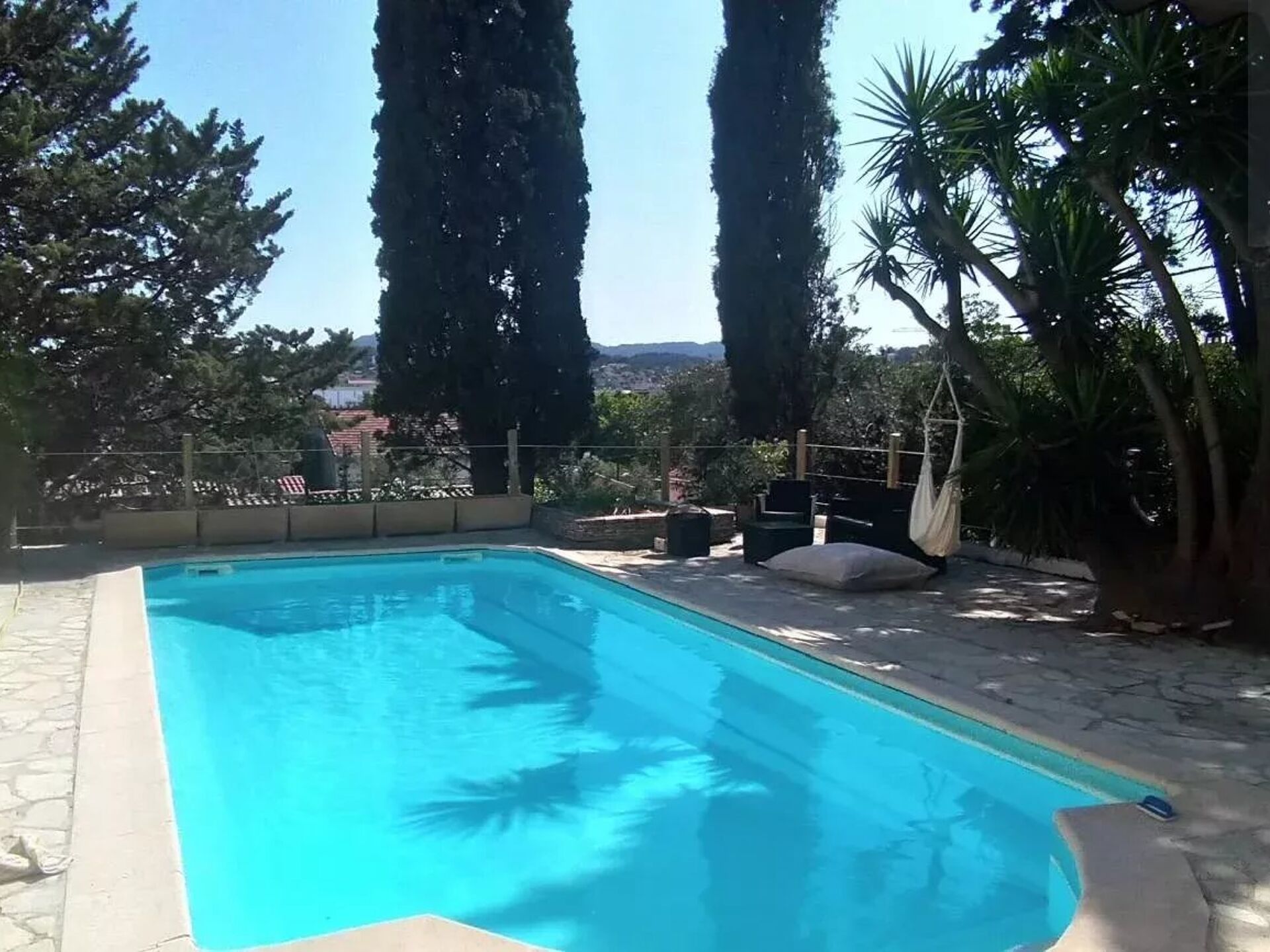 Face à la petite rade et sur les hauteurs de l'entrée de Ville, belle propriété de la fin du XIXème siècle sur 1126m² de terrain avec jardin et piscine. En fond d'impasse, cette bâtisse intégralement rénovée d'environ 154m² habitable est composée d'un hall d'entrée d'époque avec carreaux ciment, salon salle à manger avec tomettes au sol, cuisine équipée, cellier, une chambre avec salle d'eau, wc indépendant. A l'étage grand palier desservant 3 chambres dont une suite parentale avec salle de bains, wc indépendant. Grand jardin arboré avec plusieurs terrasses et une belle piscine. Accès pour Toulon et les axes autoroutiers rapides. Prestations : Propriété rénovée avec matériaux de qualité, chauffage et eau chaude sanitaire par chaudière neuve Frisquet, sols avec carreaux ciment tomettes ou parquet, menuiseries double vitrage PVC et volets bois, salles d'eau rénovées, cave, dépendances ... Référence : 2746 - DPE : Classe D - Prix : 725 000 euros Honoraires d'Agence Inclus de 3,57% TTC à la charge de l'acquéreur.