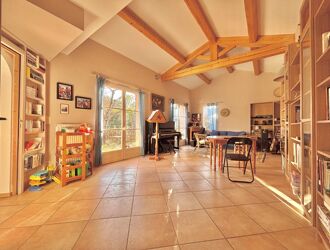 À découvrir en exclusivité cette villa d'architecte érigée sur un terrain de 1450 m², présentant un bel espace piscine, de beaux volumes et le charme indéniable du bois. Idéalement située en bordure de campagne, cette maison vous séduira aussi par sa luminosité, son calme et ses prestations de qualité, tel que sa pompe à chaleur, sa cuisine équipée ou encore sa cheminée centrale.