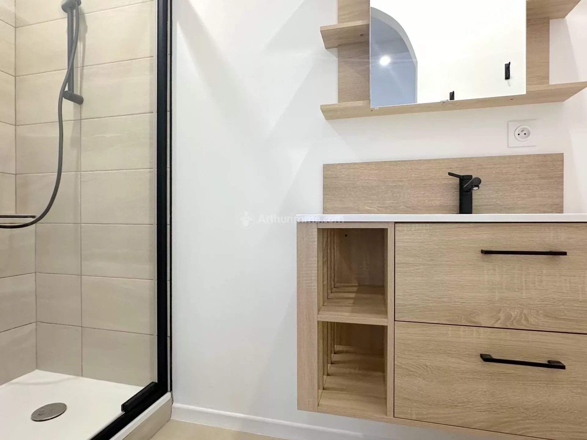 Studio meublé d'environ 21 m² situé au premier étage d'une résidence neuve et sécurisée. Il se compose d'une entrée avec placard intégré, une pièce de vie avec cuisine ouverte et équipée (hotte, plaque vitrocéramique, frigo-top, micro-ondes, cafetière) et d'une salle d'eau avec toilette.