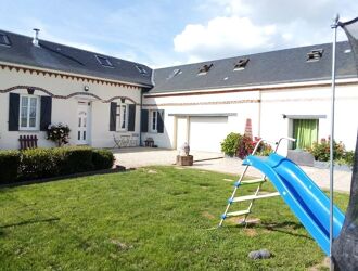A 5 minutes à pied du centre-ville, pavillon de plain-pied comprenant : double séjour avec cheminée insert, cuisine semi-ouverte - aménagée et équipée (hotte, plaque, four), grande buanderie. Pour compléter ce plain-pied de vie aux beaux volumes, vous y trouverez un wc indépendant, une salle de bains, 4 chambres spacieuses allant de 10 à 18 m2, ainsi qu'une seconde salle de douches avec wc. Garage. Le tout implanté sur un beau jardin entièrement clos et arboré, sans vis-à-vis, d'une surface de 1 584 m2. ~Produit rare, à découvrir rapidement !