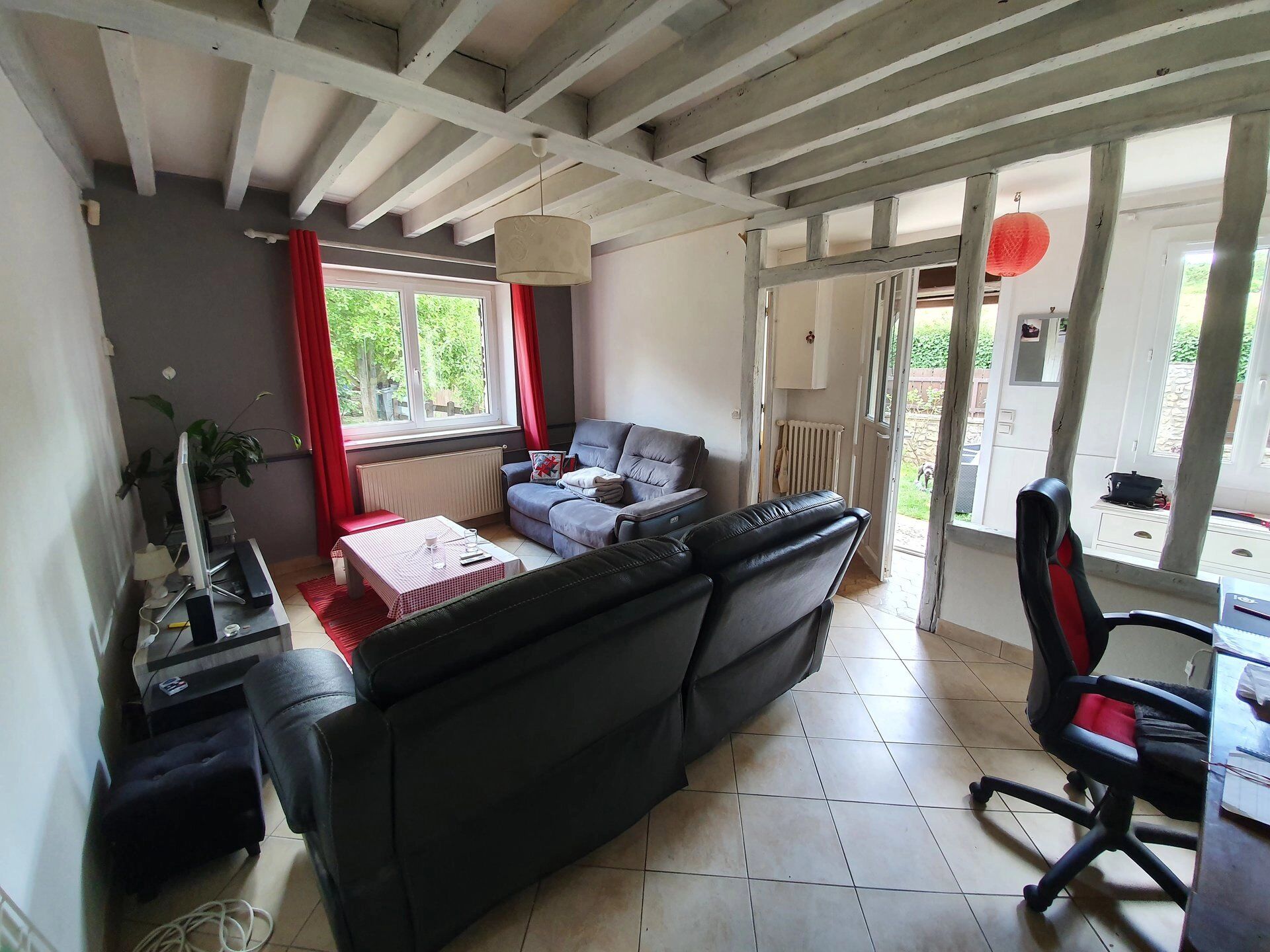 A 5 minutes de Gisors, dans un village avec écoles sur place, cette maison de type 4 pants vous offre de plain-pied : entrée, wc indépendant, cuisine aménagée et équipée, séjour, bureau, chambre, salle de douches et pièce palière donnant accès au sous-sol aménagé en chambre, salle de jeux, espace buanderie et atelier. Chalet extérieur. Portail motorisé, fenêtres en double vitrage PVC, volets roulants électriques, chauffage électrique, assainissement au tout à l'égout. Le tout, sur environ 570 m2 de terrain.