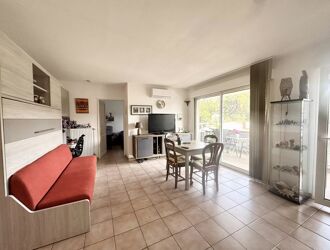 Joli studio de 24,60 m² en rez-de-jardin dans une résidence sécurisée, comprenant une pièce à vivre avec cuisine aménagée, une salle d'eau avec WC, une belle terrasse ombragée et un petit jardinet clos de 21 m².