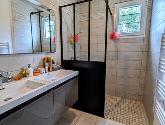 Le rez-de-chaussée dispose également d’un WC séparé, d’un accès au garage par une porte de service isolante, ainsi que d’un second accès direct sur la cour, très pratique au quotidien.