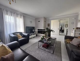 Profitez d’une lumineuse pièce de vie (salon-séjour) ouvrant sur un jardin arboré et une terrasse ensoleillée, parfaits pour des moments de détente en famille ou entre amis.