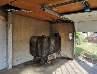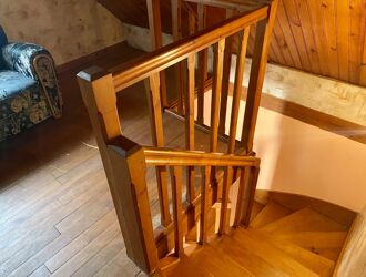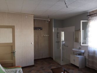 The house is built on an adjoining plot of 1950m2, and also includes a double garage. Central heating is provided by a wood-fired boiler.