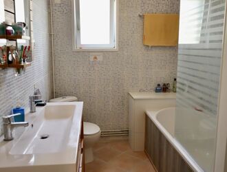 This two-storey house comprises large rooms on the garden level: a fitted and equipped kitchen, a dining room and a double living room, plus a bedroom, a shower room, a separate toilet and a large 38m2 veranda with travertine flooring. On the second floor, a landing leads to a large 17.9m2 bedroom, a games room and two further bedrooms. On this floor, further work is required for 4 spaces (an additional bedroom, a shower room, a toilet and a dressing room). On the mezzanine level of the playroom is a room currently used as a teenager's bedroom.