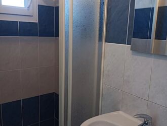 Le rez-de-chaussée est composé d’un dégagement, d’une cuisine aménagée et équipée ouverte sur le salon séjour, d’une chambre, et d’une salle d’eau avec WC.