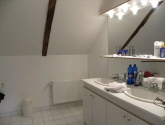 L’étage comprend 2 belles chambres de près de 17 et 18 m², des toilettes indépendantes, une salle d’eau et une salle de jeux aménageable de 25 m² pouvant faire office de 5ème chambre.