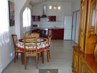 Elle se compose d'une cuisine aménagée et équipée ouverte sur un grand salon séjour, deux chambres, une salle d'eau et des toilettes indépendantes.