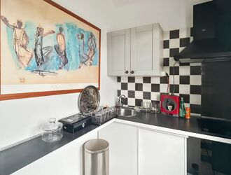 Dès l’entrée, on découvre une pièce de vie lumineuse, agrémentée d’une cuisine aménagée fonctionnelle ainsi qu'une salle d’eau avec WC.