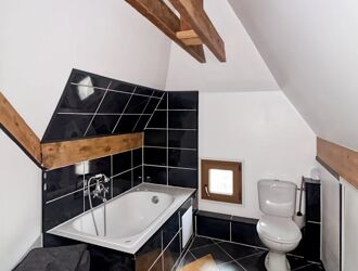 Côté nuit, une chambre, une salle de bains et un WC indépendant complètent l’ensemble.