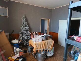 Une autre partie du bien, pouvant être transformée en habitation, se compose de quatre pièces d’environ 16 m² chacune, à rénover entièrement.