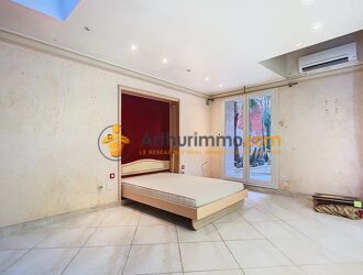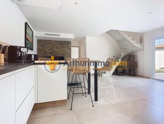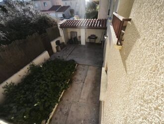quartier recherché proche du mas guérido, maison de ville comprenant en rdc un vaste salon séjour attenant à une cuisine séparée et terrasse, une chambre.