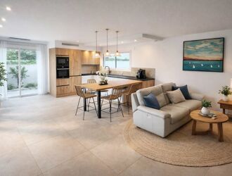 Elle offre des prestations de qualité : climatisation Air Zone, grande porte d’entrée en bois massif, pierres naturelles et larges baies vitrées apportant une luminosité exceptionnelle au vaste séjour de prés de 50 m2.