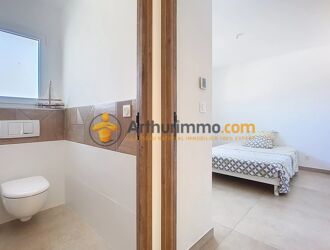 Elle se compose d’une pièce de vie lumineuse, ouverte sur la piscine, d’une cuisine américaine moderne et équipée avec accès à une grande terrasse, de 2 chambres avec placards, d’une suite parentale avec dressing, d’une salle de bain moderne et d’un WC indépendant.