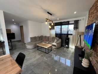 Vous entrez dans un hall avec placard et toilette qui donne sur une cuisine équipée avec double four et double four a micro onde ouvert sur le séjour donnant sur 2 terrasses. Un coin avec une suite parentale, 2 chambre et une salle d'eau.