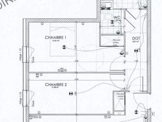APPARTEMENT DE 3 PIECES DE 64 M² AU DERNIER ETAGE AVEC ASCENSEUR COMPRENANT : ENTREE SEJOUR CUISNE 2 CHAMBRES SALLE D EAU WC SEPARES PLACARDS.