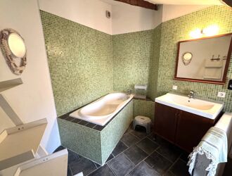 Cour sans vis à vis, grange, cave, cuisine voutée équipée récente, salle à manger en rez de chaussée. Un terrain non attenant en bas du village avec un abri de jardin en pierres est également vendu avec la maison.