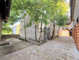 Une petite terrasse devant la maison, cour intérieure avec accès par un porche en pierre pour rentrer votre véhicule et une terrasse sans vis-à-vis avec une jolie vue dégagée sur la vallée.