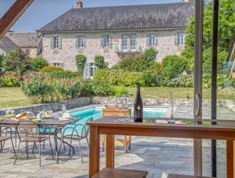 4) Sur la droite, les jardins d’agréments et potagers accueillent la piscine et son Poolhouse de 40m² avec Four à Pain/Pizza, cuisine d’été et salle d’eau. La piscine de 5*10 m construite en 2009 ne présente aucun vis-à-vis. (pvc armé, filtration sable avec électrolyseur, rideau immergé)