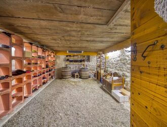 - RDC : salon, salle à manger / cuisine, cellier, toilettes, hall, une grande pièce, une chambre avec toilette, et l’accès à une cave (hygro régulée) par la grande pièce de vie.