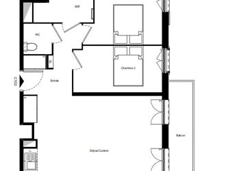 Cet appartement vous offre une entrée, un dégagement, une cuisine équipée, un séjour salon avec balcon, une salle de bains, un WC et deux chambres avec chacune leur balcon.