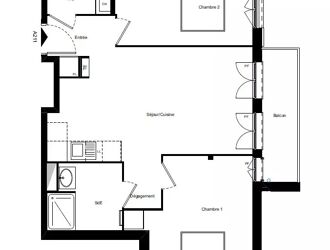 Cet appartement vous offre une entrée, une cuisine à aménager ouverte sur le séjour salon, un dégagement avec placard, deux chambres, une salle d'eau et un WC.