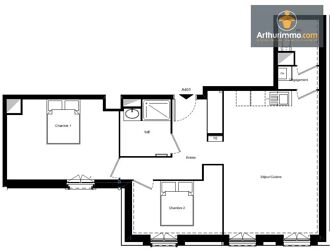 Cet appartement vous offre une entrée avec placard, une cuisine à aménager ouverte sur le séjour salon, un dégagement, deux chambres, une salle d'eau et un WC.
