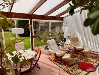 La cuisine dînatoire, spacieuse et entièrement équipée, s’ouvre sur un jardin soigneusement entretenu, idéal pour partager des moments conviviaux en famille ou entre amis. Les pièces de réception, comprenant un salon chaleureux avec cheminée et une élégante salle à manger, offrent un cadre parfait pour recevoir vos invités dans une ambiance accueillante.