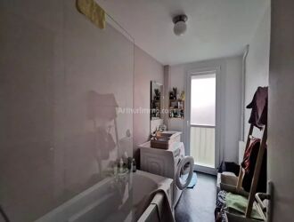 Dans immeuble de 1967, 27 2è étage, sans ascenseur, 55.64 m², appt avec 2 chambres. Entrée dégagement + placard, séjour Sud, cuisine nue (non équipée), cellier, wc, salle de bains, 2 chambres (environ 12 m² et 10 m²) - Chauffage gaz individuel. Parking.