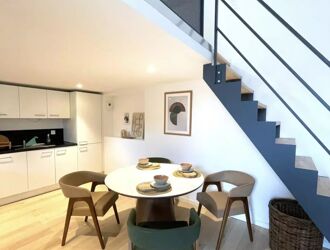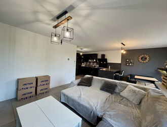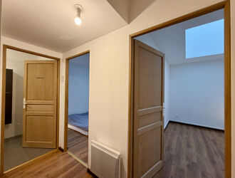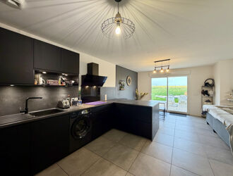 Il offre une cuisine ouverte sur un salon séjour, deux chambres ainsi qu'une salle de bains avec wc.