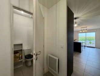 Il est composé d'une entrée, d'un séjour ouvrant sur un balcon de 3,20 m² d'une cuisine aménagée et équipée, d'une chambre et d'une salle d'eau avec WC.