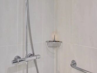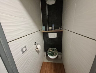 Une belle salle de bain avec WC, pratique pour toute la famille