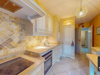 La cuisine aménagée, ouverte sur le séjour, crée un espace convivial et fonctionnel.
